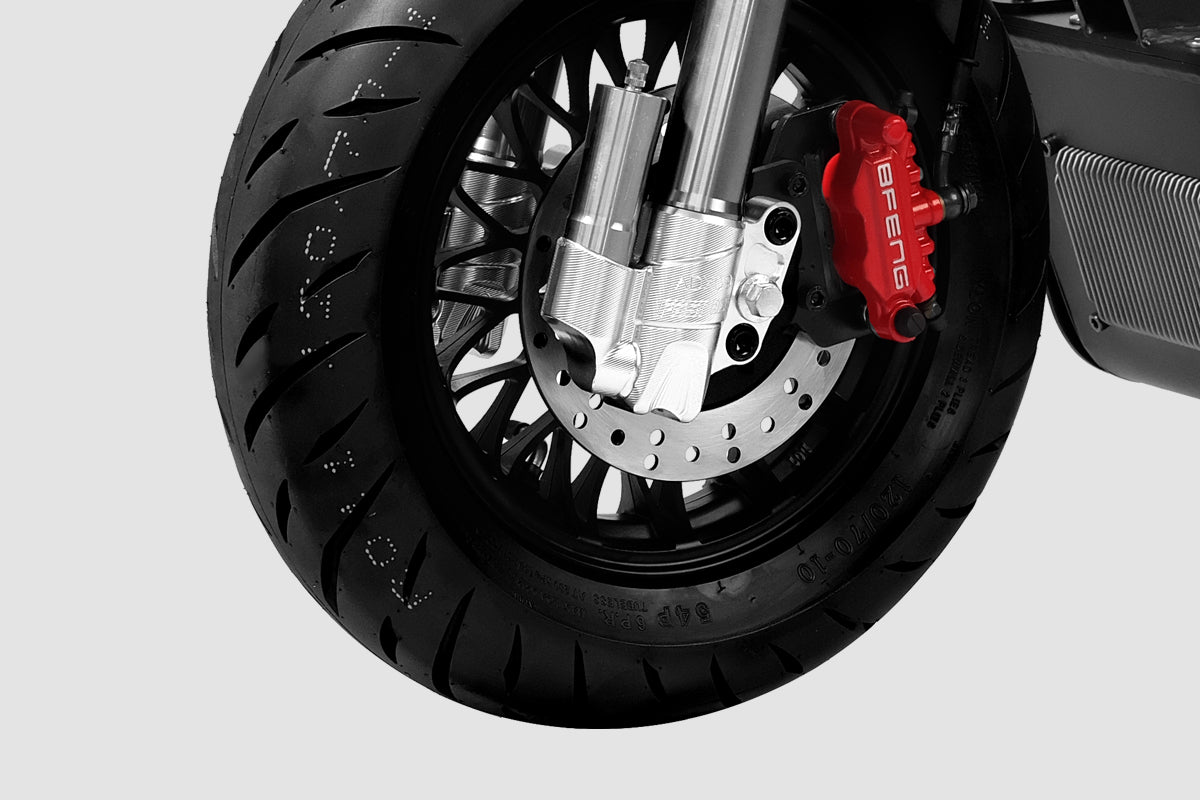 - Verbesserte Sicherheitsfunktionen : Sicherheit hat oberste Priorität. Der Roller ist mit Hochleistungsbremsen ausgestattet, die unter allen Bedingungen zuverlässige Bremskraft bieten. Helle LED-Scheinwerfer und -Rücklichter verbessern die Sichtbarkeit und sorgen für Sicherheit bei Tag- und Nachtfahrten.