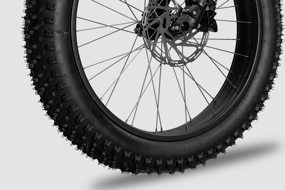 [26 x 4,5 Zoll große Reifen] – Die 26 x 4,5 Zoll großen Reifen des K9 Hybrid Bikes bieten hervorragende Stabilität und Grip auf jedem Untergrund und sorgen für eine ruhige und sichere Fahrt, unabhängig von Gelände und Wetterbedingungen.
